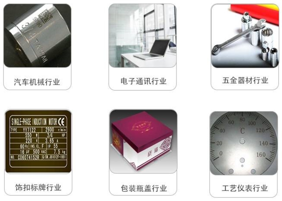 激光打標(biāo)技術(shù)是激光加工主要的應(yīng)用領(lǐng)域之一。激光打標(biāo)是利用高能量密度的激光對(duì)工件進(jìn)行局部照射,使表層材料汽化或發(fā)生顏色變化的化學(xué)反應(yīng),從而留下持續(xù)性標(biāo)記的一種打標(biāo)方法。激光打標(biāo)可以打出各種文字、符號(hào)和圖案等,字符大小可以從毫米到微米量級(jí),這對(duì)產(chǎn)品的防偽有特殊的意義。